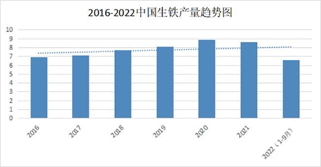 中國(guó)生鐵2016-2022年產(chǎn)量分析